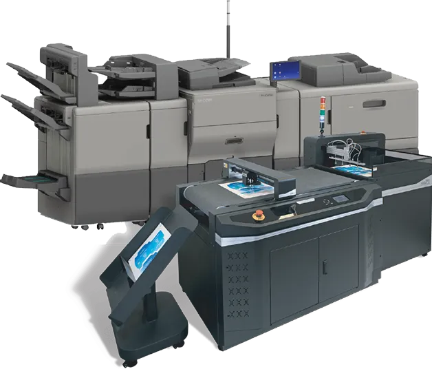 The equipment we provide is from global brands like RICOH/KONICA MINOLTA/XEROX/UCHIDA. We give you the solution that meets your needs so you can print on demand within your premises.